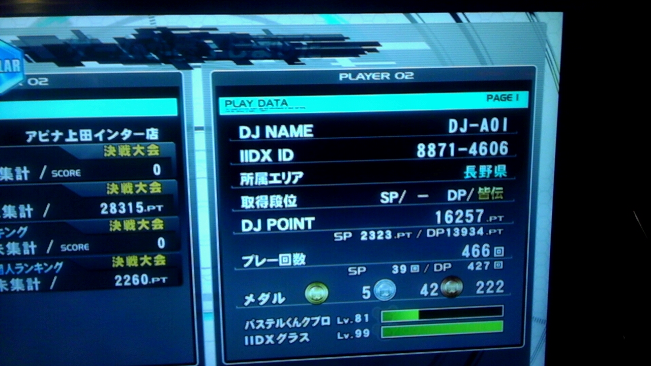 DJ POINT 総合 19239pt. SP 5420pt. DP 13819pt.